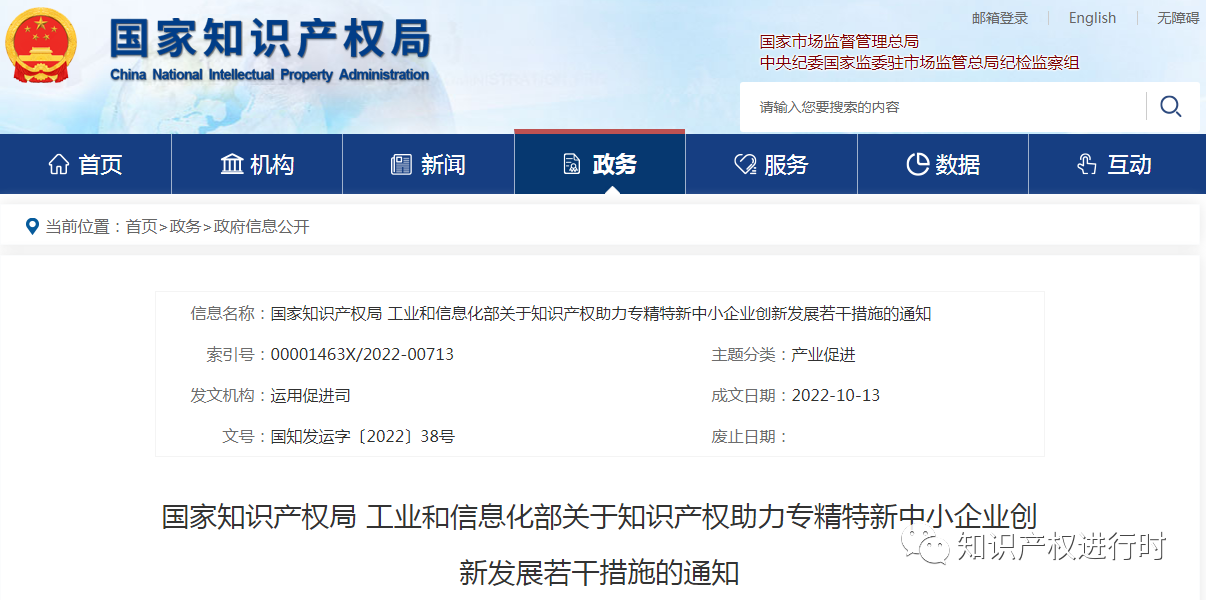 國家知識產權局 工業和信息化部關于知識產權助力專精特新中小企業創新發展若干措施的通知