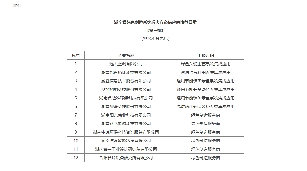 附件:湖南省綠色制造系統解決方案供應商推薦目錄(第三批)