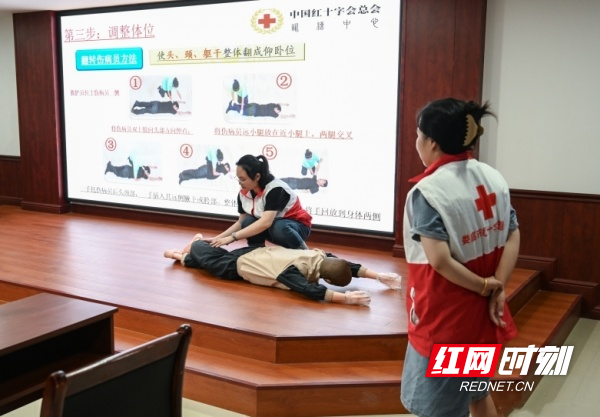 本次培訓分為理論知識講解和實際操作兩個環節,特邀婁底職業技術學院醫學部臨床醫學院院長譚芳主講。譚芳對心肺復蘇、氣道梗塞急救法和AED機使用、海姆立克急救法,災害事故、意外傷害逃生避險、常見急癥的現場救護原則等進行了詳細的講解。