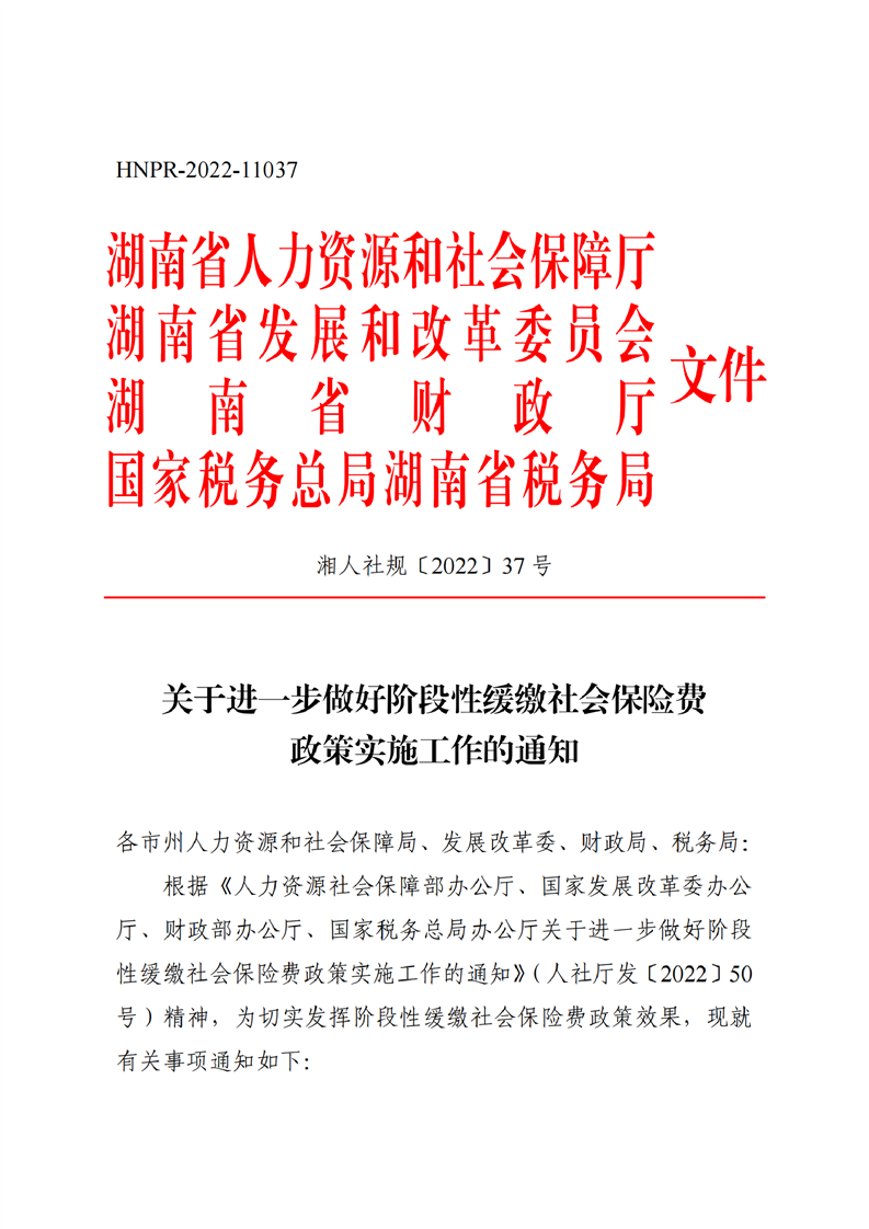 湖南印發《關于進一步做好階段性緩繳社會保險費政策實施工作有關問題的通知》