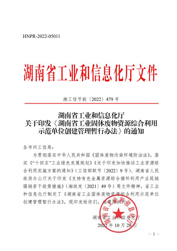 湖南省工業和信息化廳關于印發《湖南省工業固體廢物資源綜合利用示范單位創建管理暫行辦法》的通知