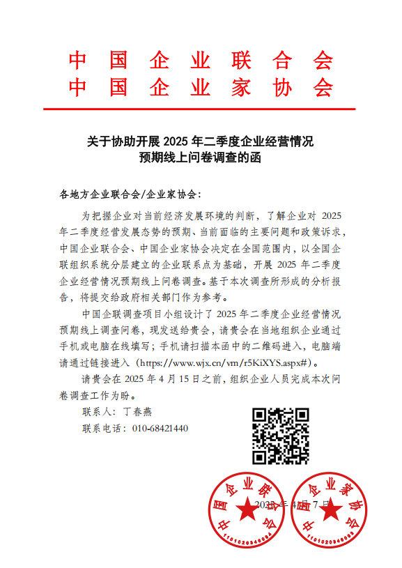 關于協(xié)助開展 2025 年二季度企業(yè)經營情況預期線上問卷調查的函
