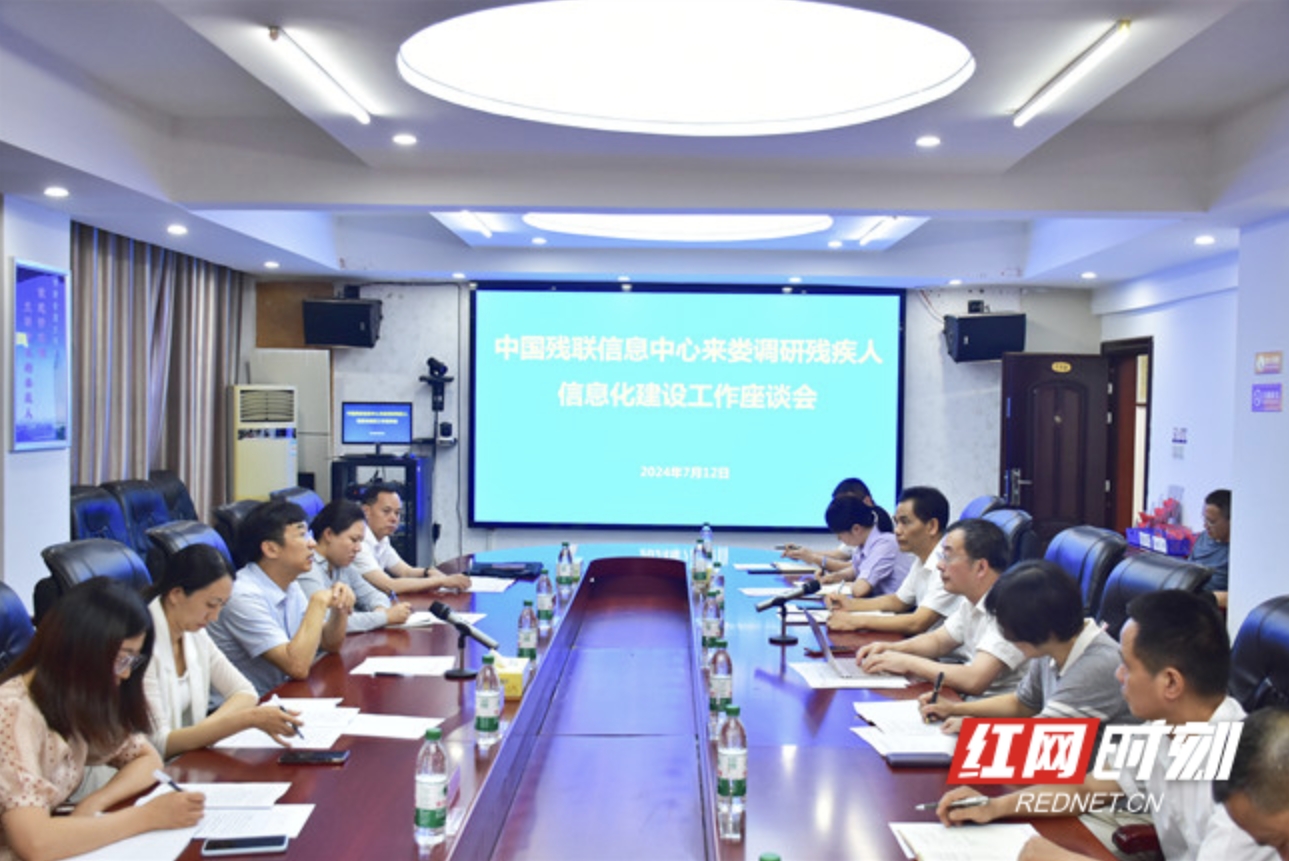 戴連君一行聽取婁底市殘聯“數智殘聯”信息化建設工作匯報。