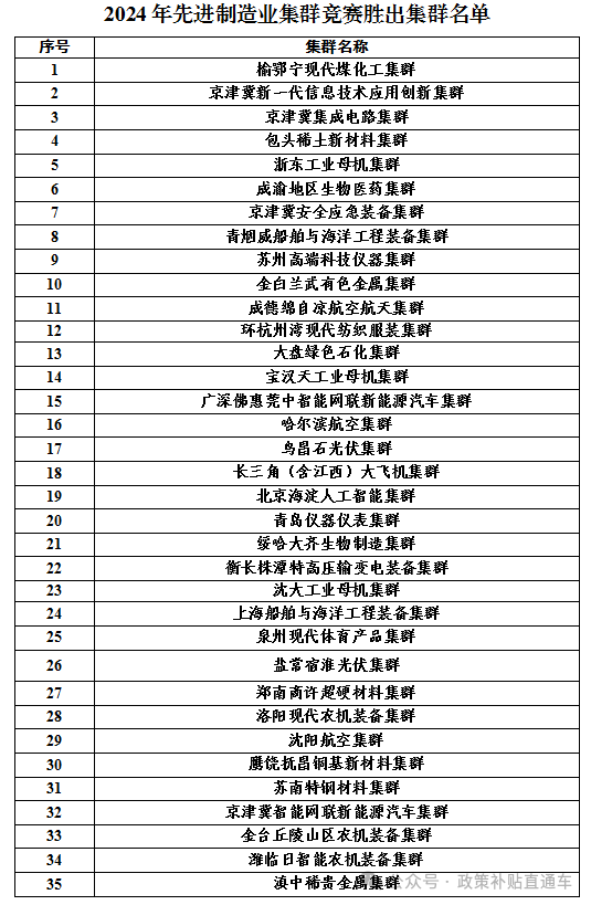2024年先進制造業集群競賽勝出集群名單公示