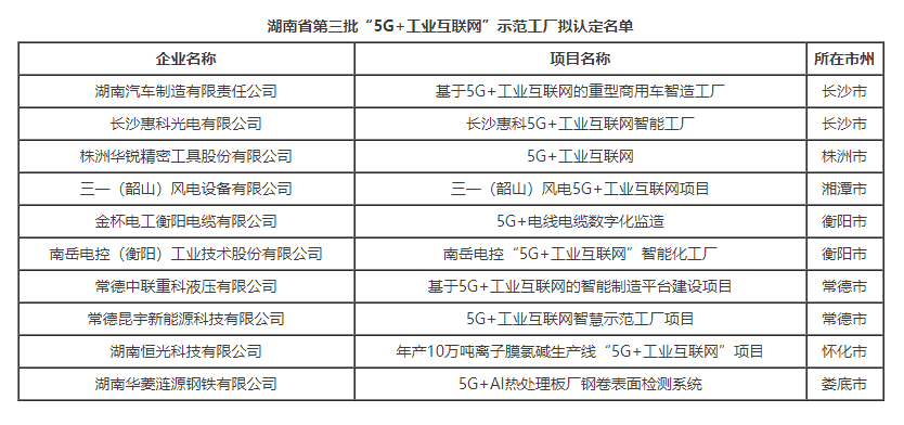 關于湖南省第三批“5G+工業(yè)互聯(lián)網(wǎng)”示范工廠擬認定名單的公示
