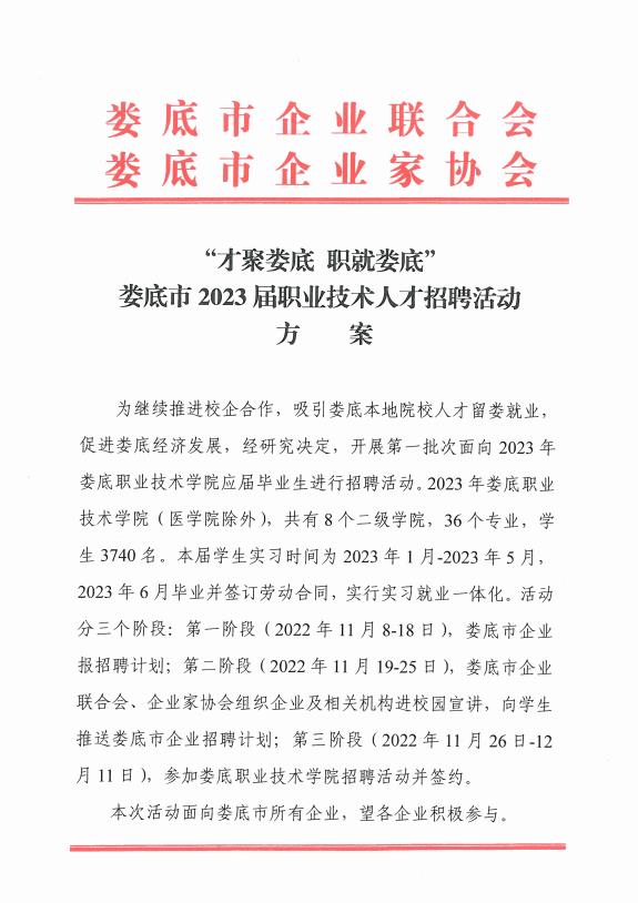 “才聚婁底 職就婁底”婁底市2023屆職業技術人才招聘活動方案