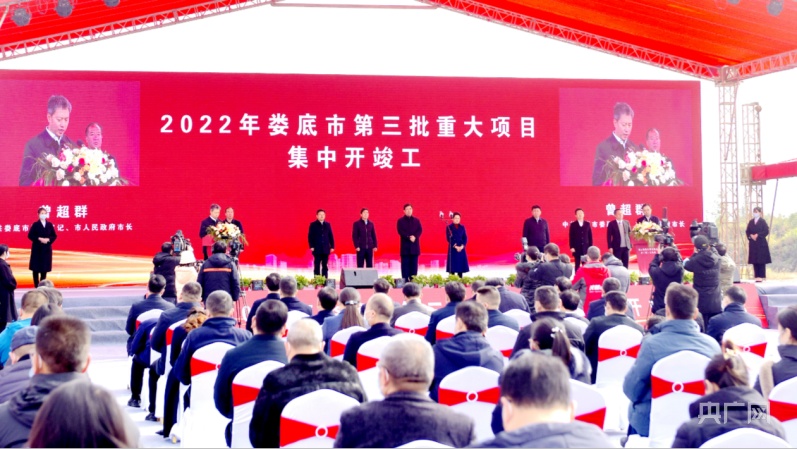 12月2日,湖南省婁底市舉行2022年第三批重大項目集中開(竣)工儀式,此次共有41個重大項目集中開工,53個重大項目集中竣工。在婁底經開區項目現場,集中開工項目13個,總投資155億元,竣工項目12個,總投資107億元。