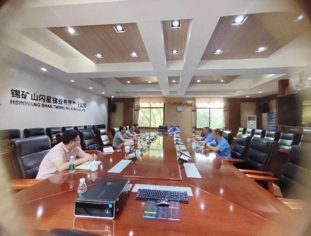 圖3 錫礦山閃星銻業領導向市企業“兩會”領導和冷水江市科工信局領導介紹企業生產經營情況