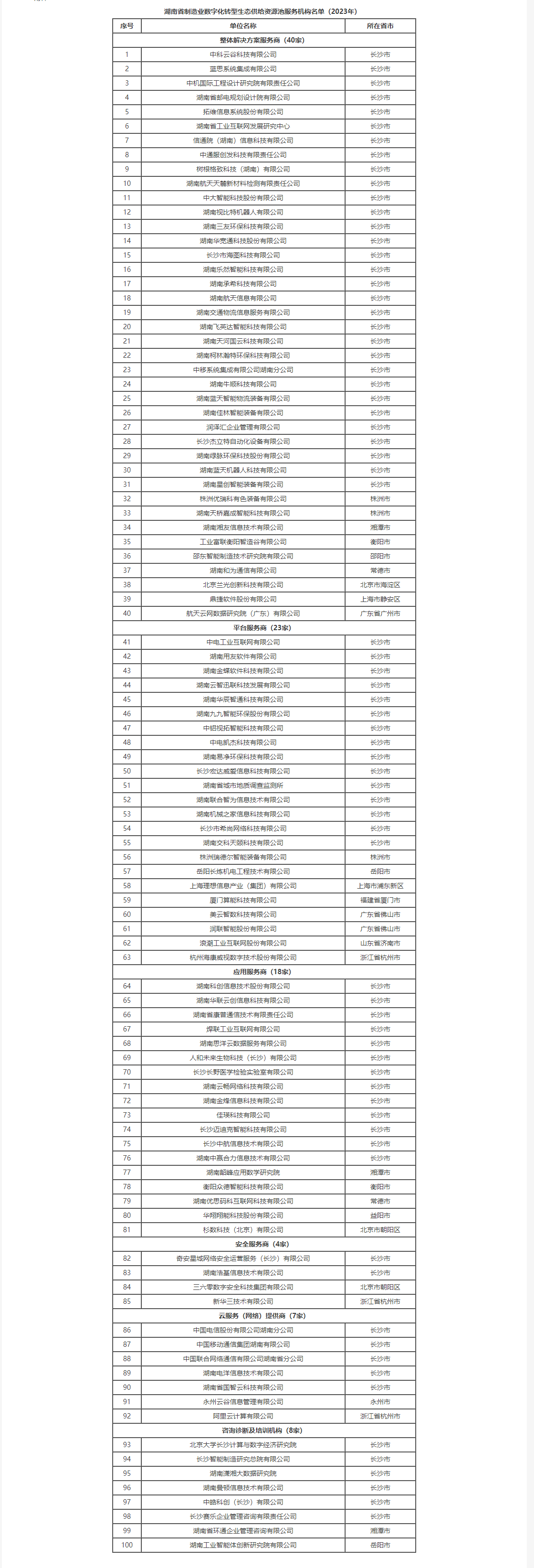 附件:湖南省制造業數字化轉型生態供給資源池服務機構名單(2023年)