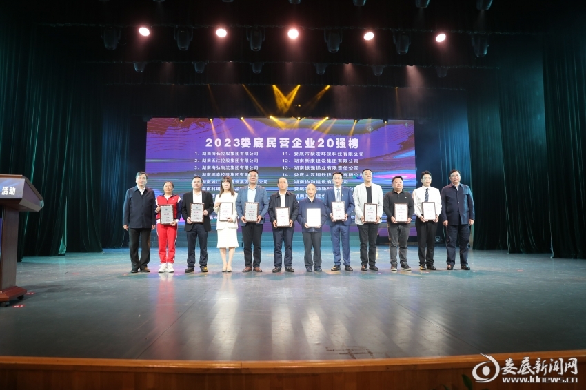市領導戴德清、梁立堅、謝學龍、李文洪、楊維、李德仁、傅小松等出席。市委常委、常務副市長蔣天海發布“2023婁底民營企業20強榜”“2023婁底民營企業新星榜”。