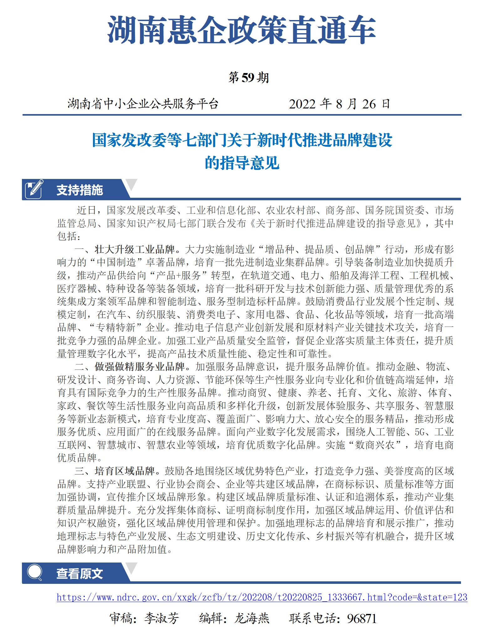 國家發改委等七部門關于新時代推進品牌建設的指導意見