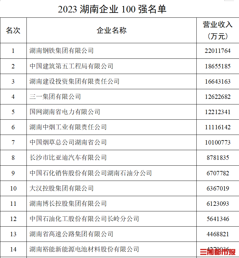 2023湖南企業百強名單出爐,湘籍百億企業增至62家,還有7家過千億